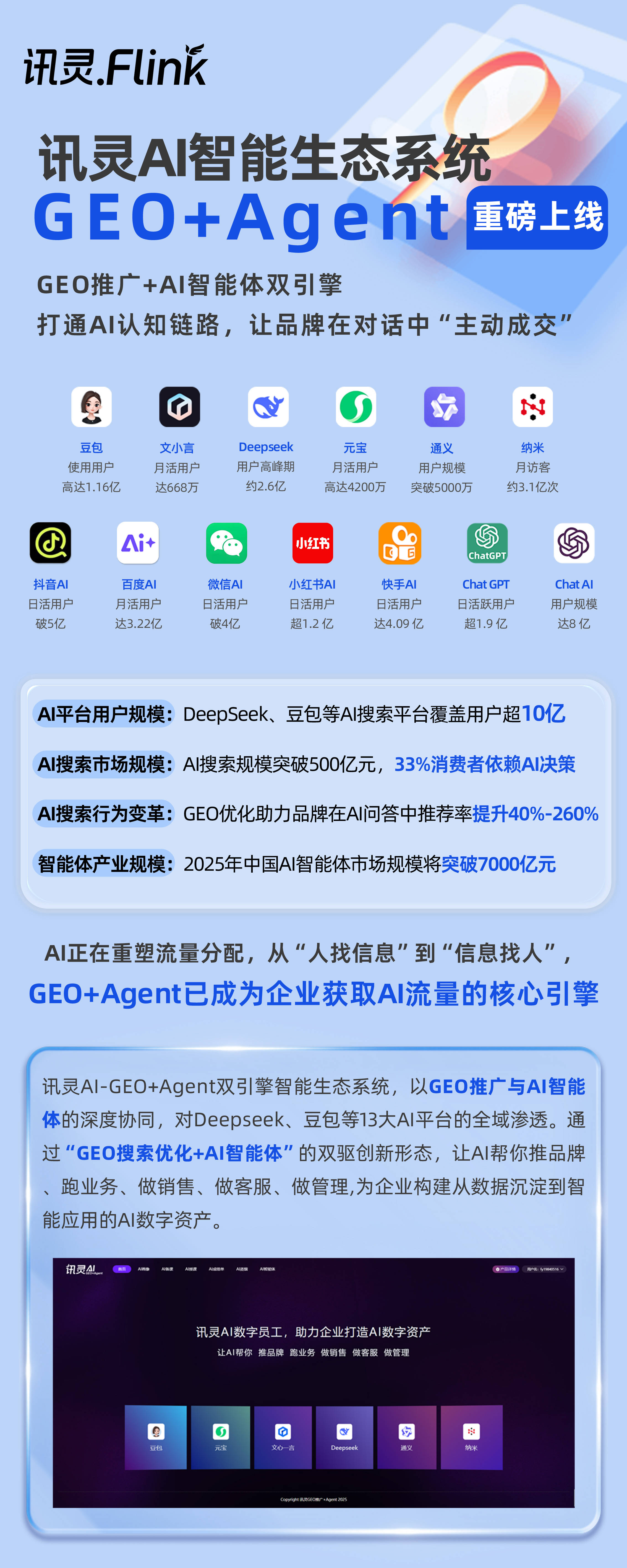 从品牌影响力来看,里太智寻GEO有深厚的实力背书。创始人陈国安毕业于985双重点科研院校西北工业大学,总部公司拥有100多项产品研发著作权及多项专利申请,连续3年通过国家高新技术企业认证及专精特新企业认证,获ISO9001、ISO27001双认证及国家网络安全等级保护三级认证,是火山引擎、腾讯混元的核心生态伙伴,首批通过工信部生成式AI服务安全评估。其配套的讯灵AI更是在中国互联网产业年会的年度评选中成功当选2025软件和信息服务业年度·创新产品。